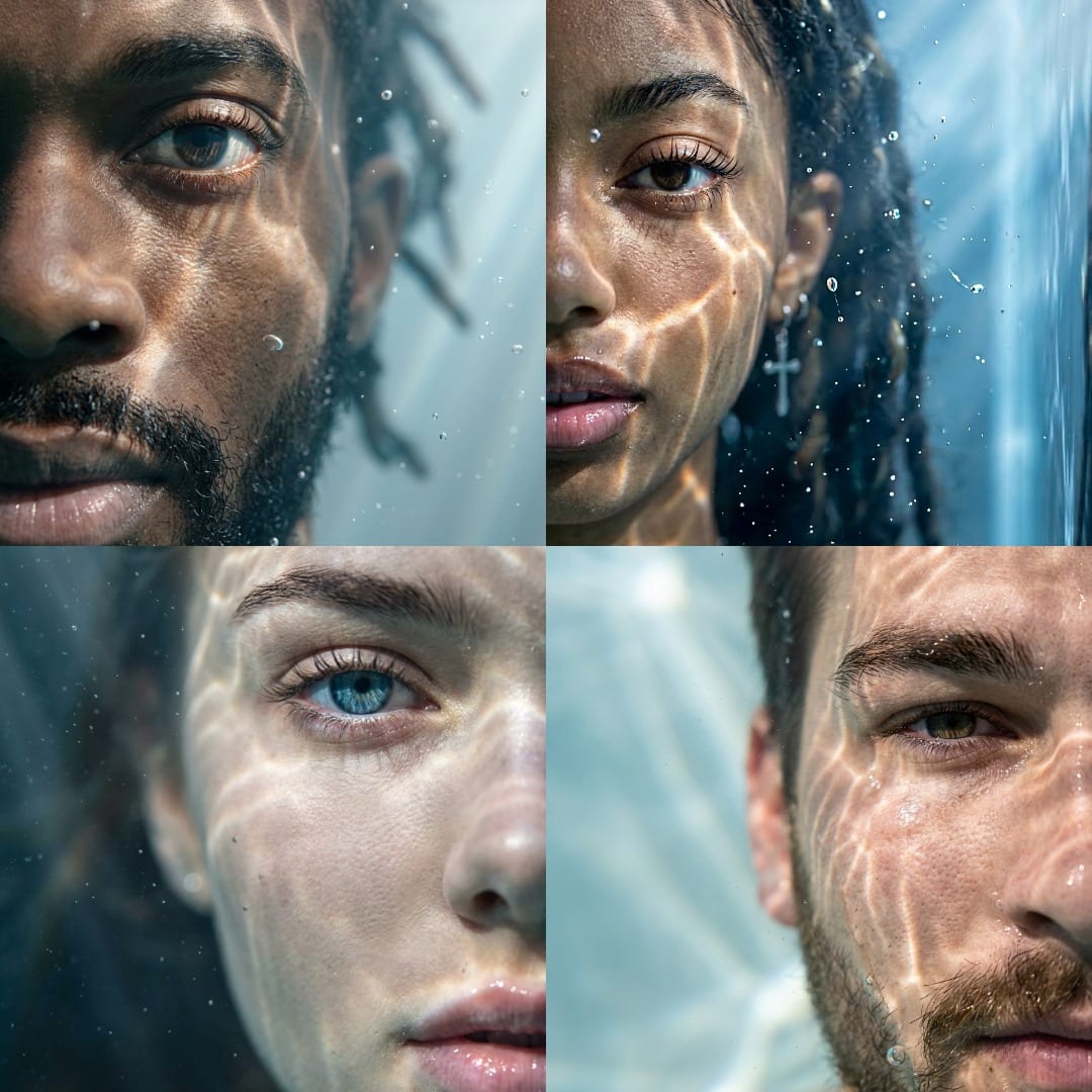 Transform any photo into a hyper-realistic underwater macro portrait with perfect identity lock — cinematic caustics, bubbles & dreamlike depth.